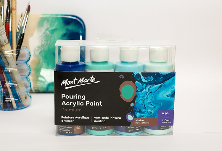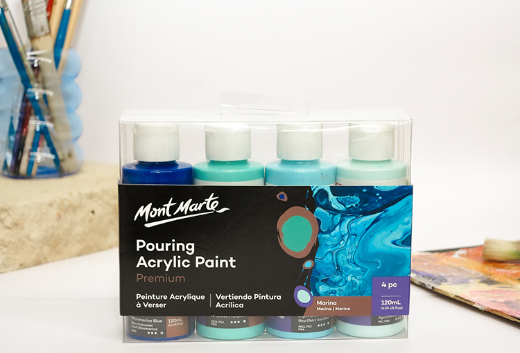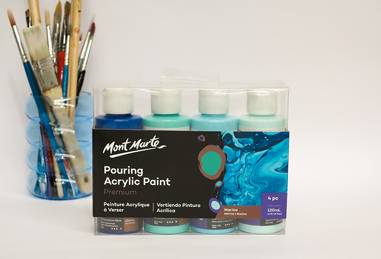 This product is perfect for your paint-pouring needs! The paints are ready for use and come in gorgeous colour combinations with 4 paints.